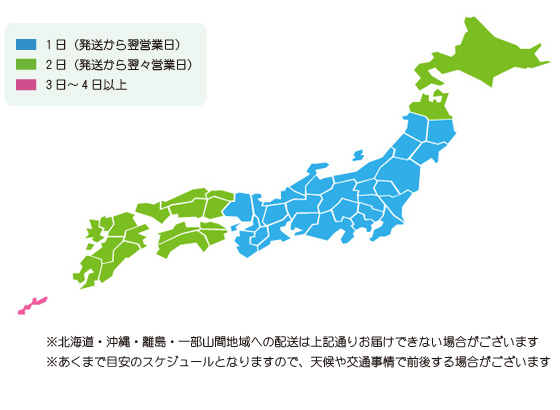 ※配送地域や天候、交通事情、配送業者の都合により、上記のとおりにお届けできない場合がございます。
